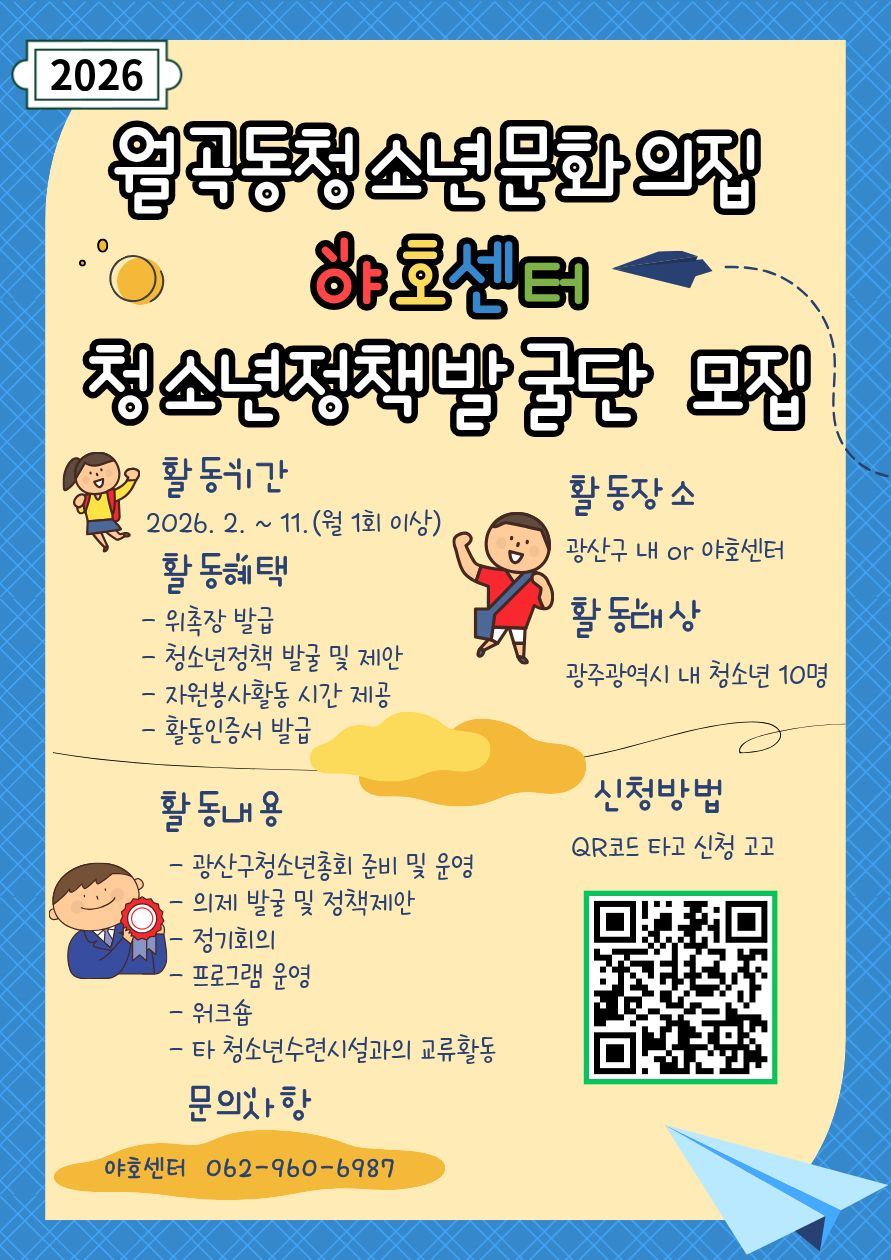 [2026년 월곡동청소년문화의집 야호센터 청소년정책발굴단 모집]