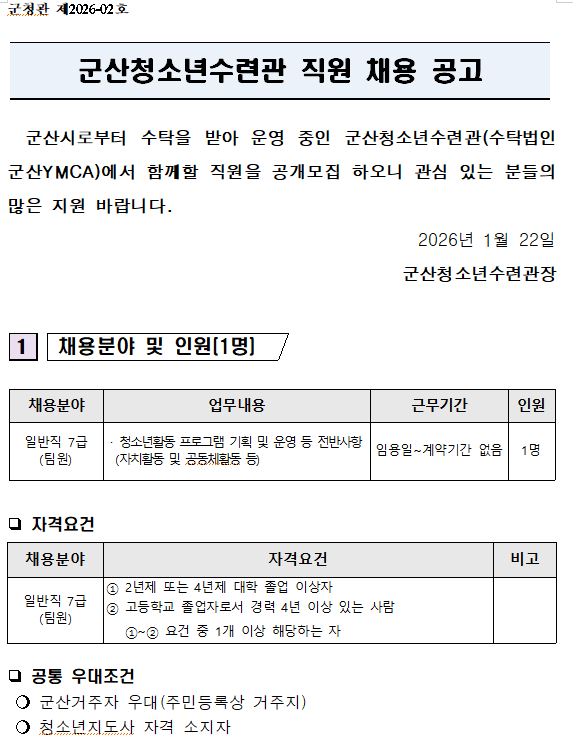 20260120 군산청소년수련관 채용 공고 일반직 7급.hwp (86.0K)