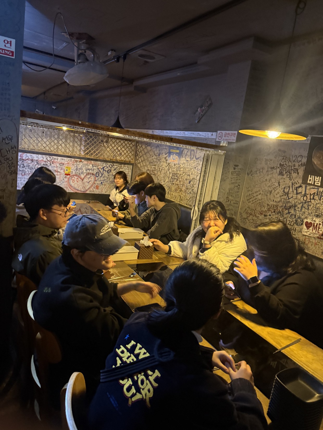 학과 구성원들이 한자리에 모여 새 학기를 맞이하며, 선배들에게 학교생활 팁을 듣고 함께 식사하며 친해지는 시간을 보냈습니다.